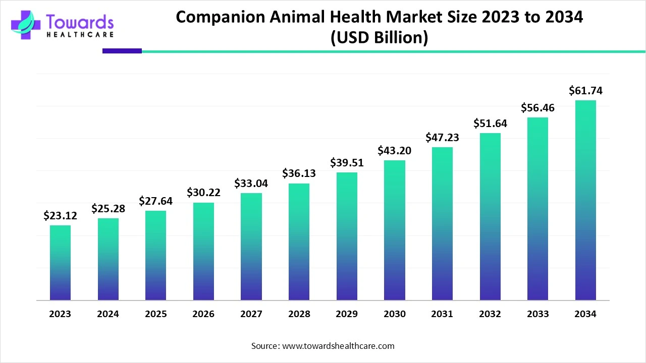 Companion Animal Health Market to Worth USD 61.74 Billion by 2034, Driven by Rising Pet Ownership and Humanization Trends